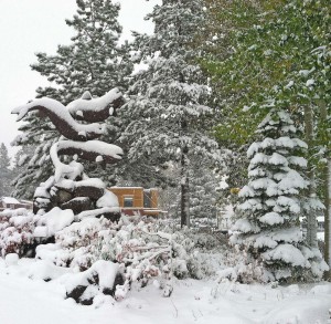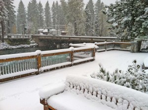 Mother Nature dusted off her winter sled today and glided over the Sierra Nevada mountain range! As of 9 a.m. this morning, five to eight inches of new snow covered the ground, from water's edge of Lake Tahoe to the summits of the ski resorts which wait with baited breath to welcome skiers and boarders to the 2012/2013 season. With additional snow expected throughout the week, Lake Tahoe, CA is now a gorgeous tapestry of rich, vibrant autumn leaves too stubborn to let go; the indigo of Tahoe's bottomless well; and the newborn snow's striking white - which in short time, will rule the land.