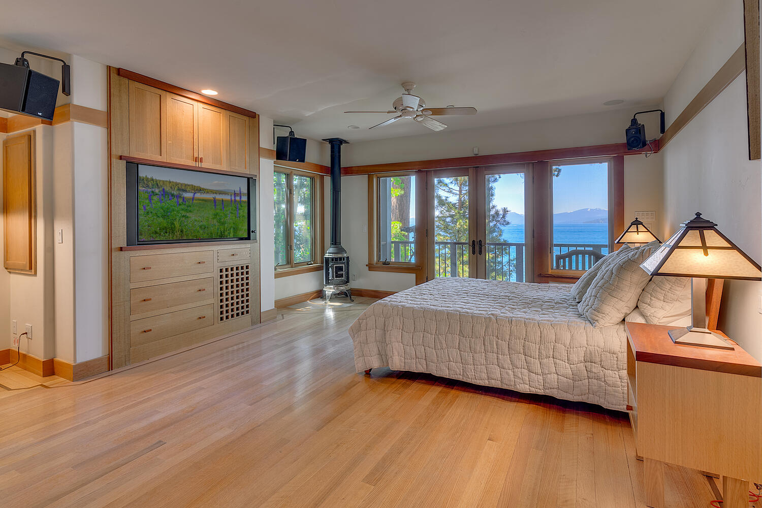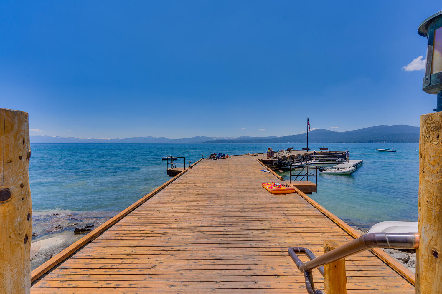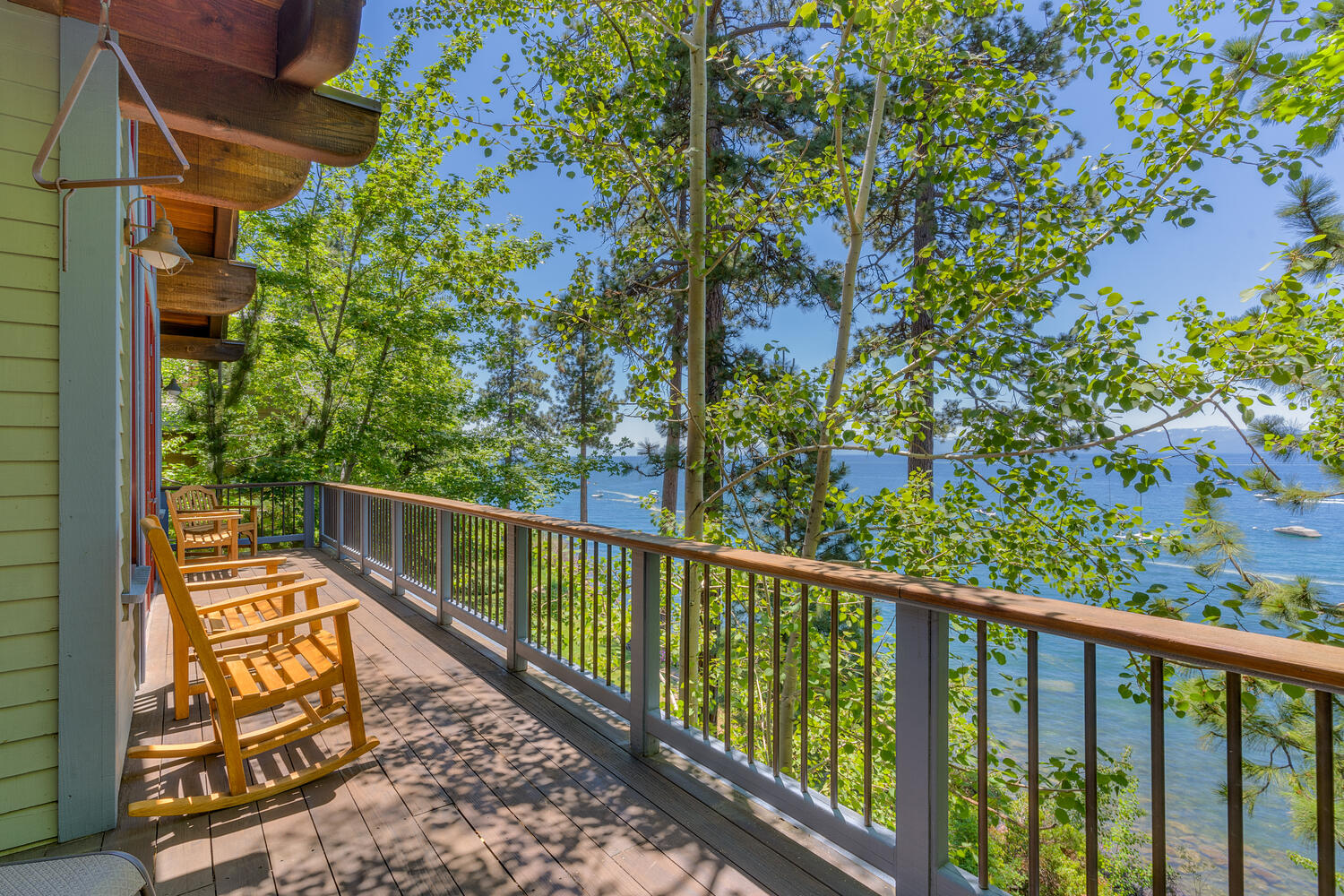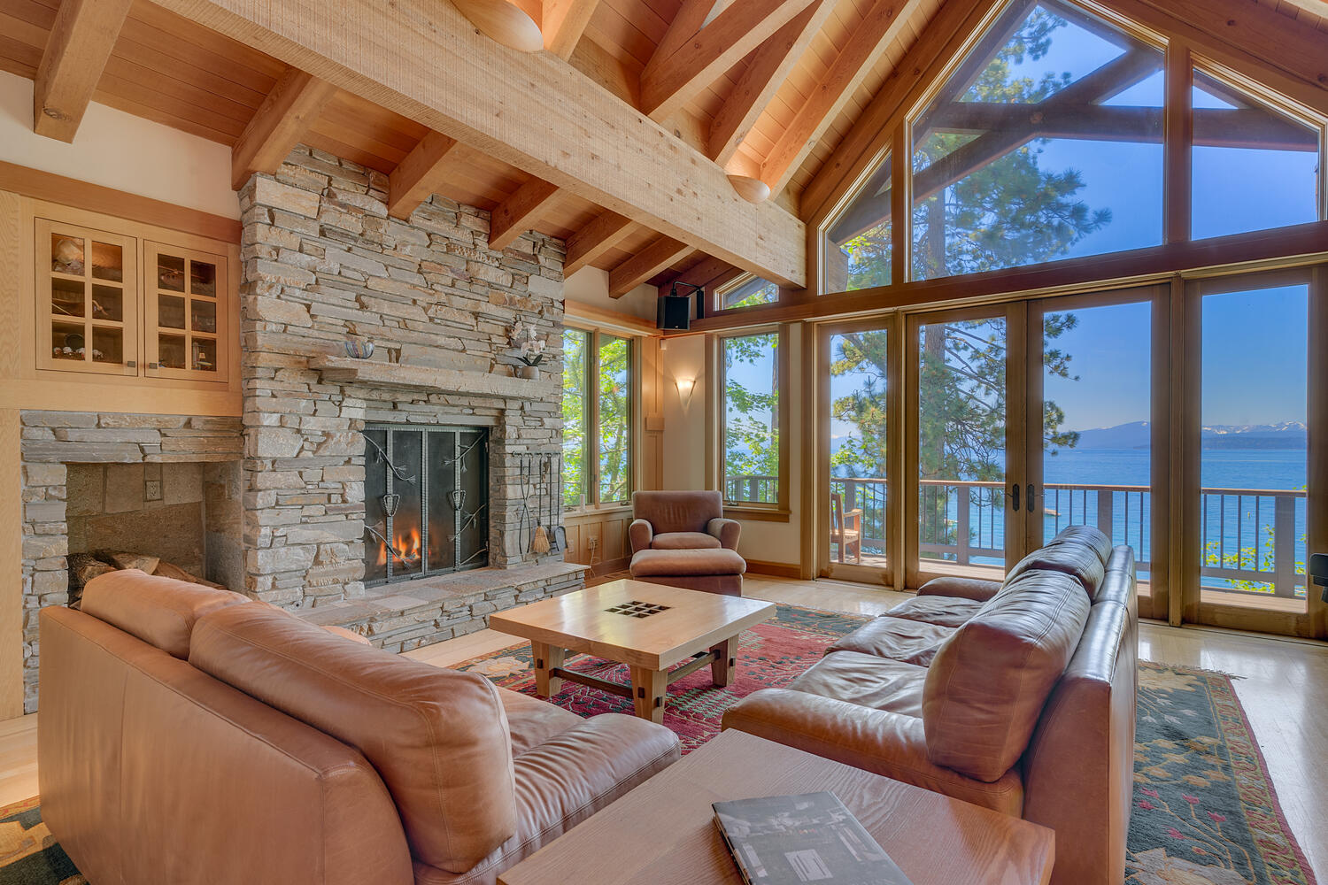 When you aren't enjoying immediate lake access and the community amenities or hosting your guests, you will appreciate the peace you will find in this comfortable setting. Floor-to-ceiling windows showcase views of Lake Tahoe. Intricate beam work, handmade ironworks, stained glass windows, stairs with custom-fit carpet, Douglas fir hardwood floors with custom trim and custom cabinetry throughout highlight the elaborate detail and care with which this home was built.