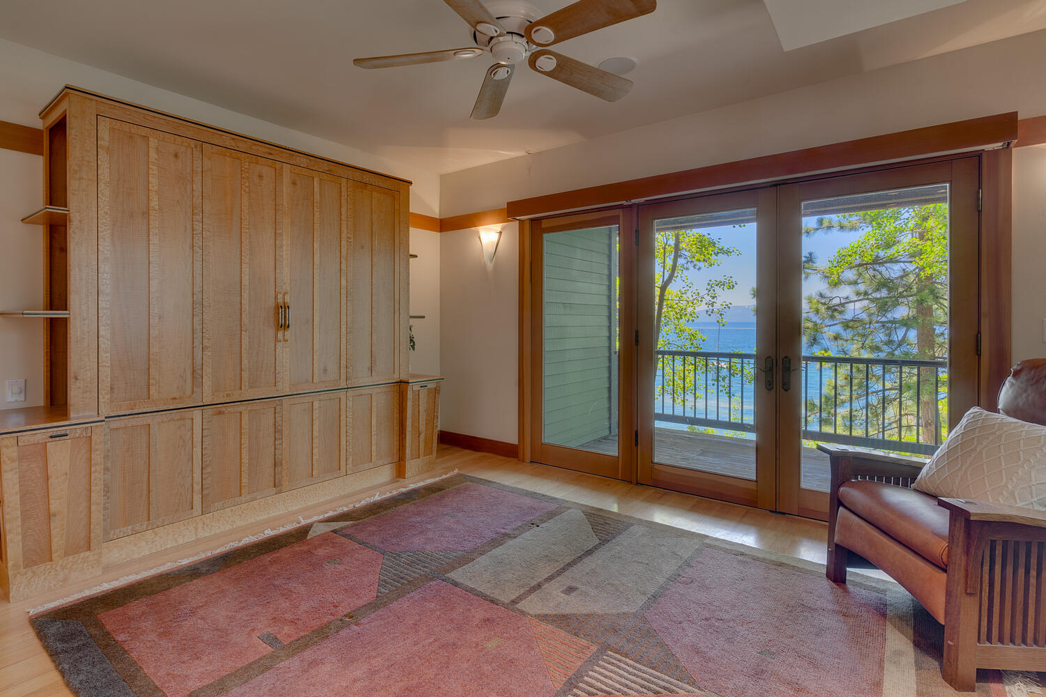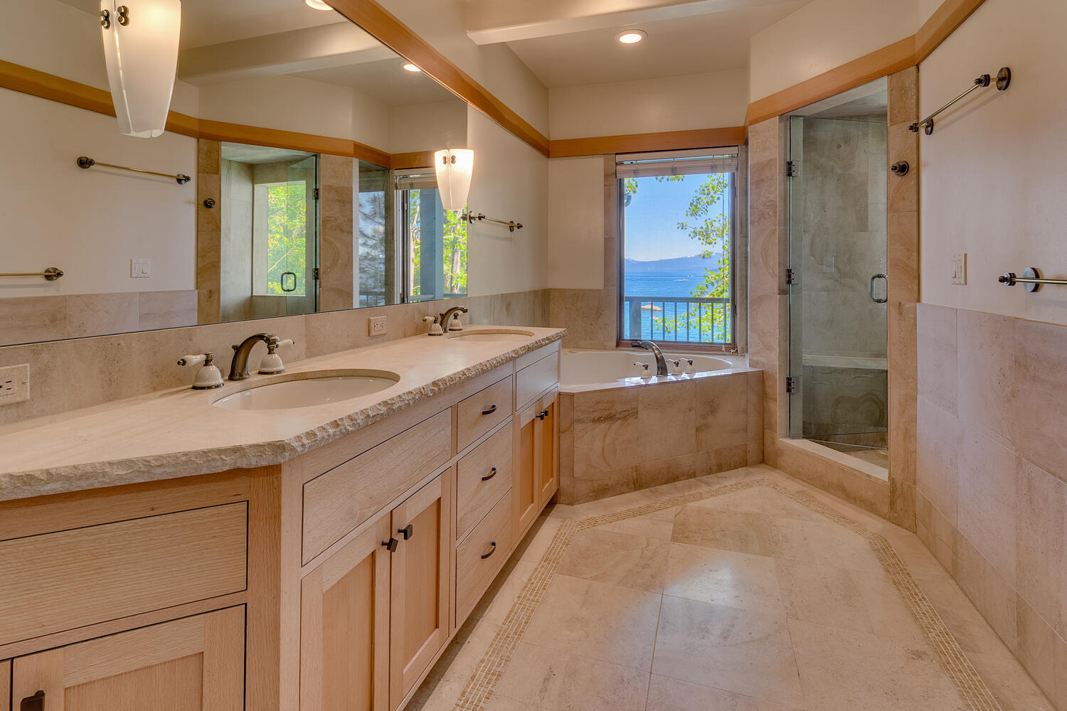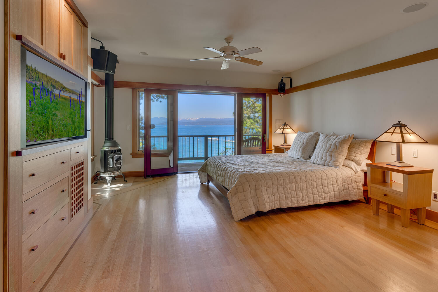When you aren't enjoying immediate lake access and the community amenities or hosting your guests, you will appreciate the peace you will find in this comfortable setting. Floor-to-ceiling windows showcase views of Lake Tahoe. Intricate beam work, handmade ironworks, stained glass windows, stairs with custom-fit carpet, Douglas fir hardwood floors with custom trim and custom cabinetry throughout highlight the elaborate detail and care with which this home was built.