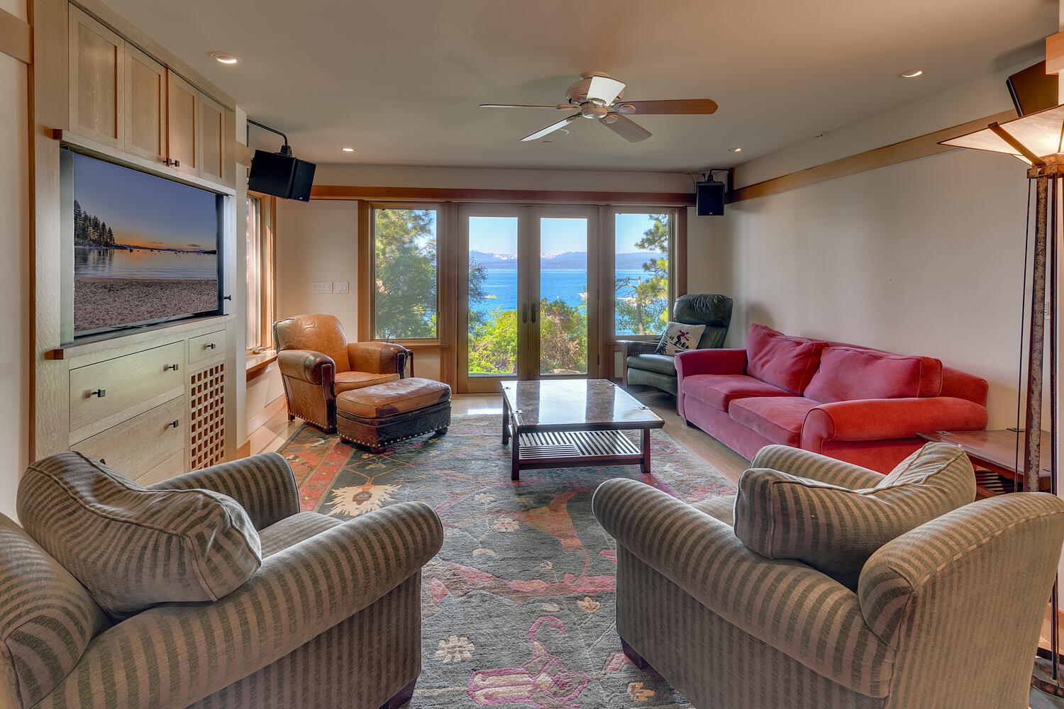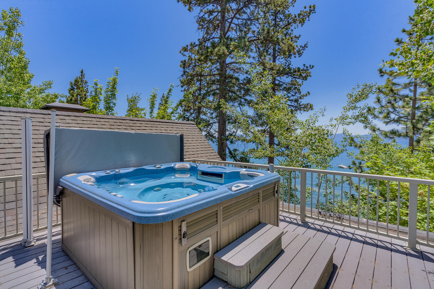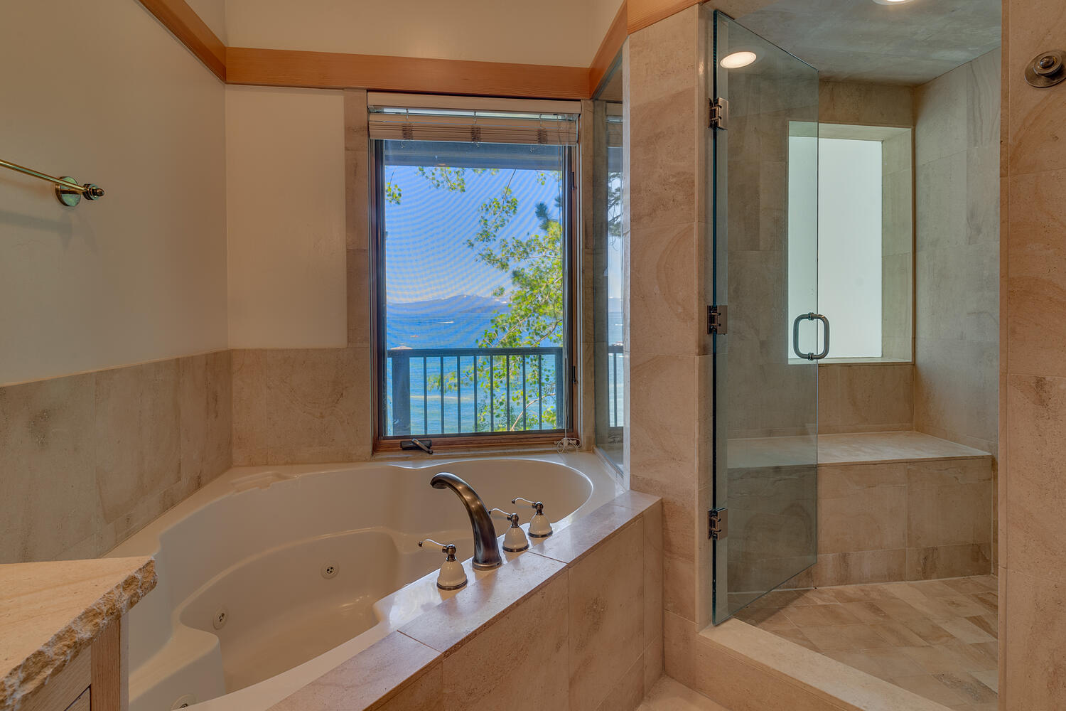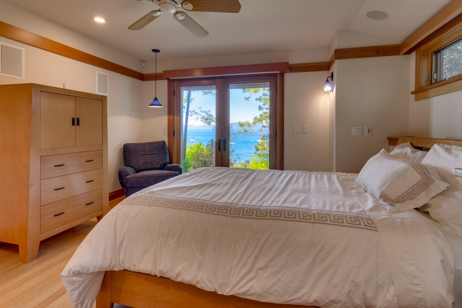 When you aren't enjoying immediate lake access and the community amenities or hosting your guests, you will appreciate the peace you will find in this comfortable setting. Floor-to-ceiling windows showcase views of Lake Tahoe. Intricate beam work, handmade ironworks, stained glass windows, stairs with custom-fit carpet, Douglas fir hardwood floors with custom trim and custom cabinetry throughout highlight the elaborate detail and care with which this home was built.