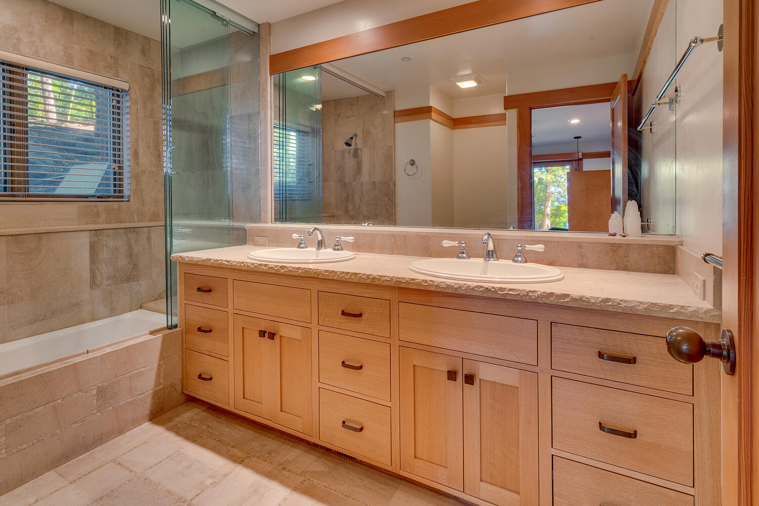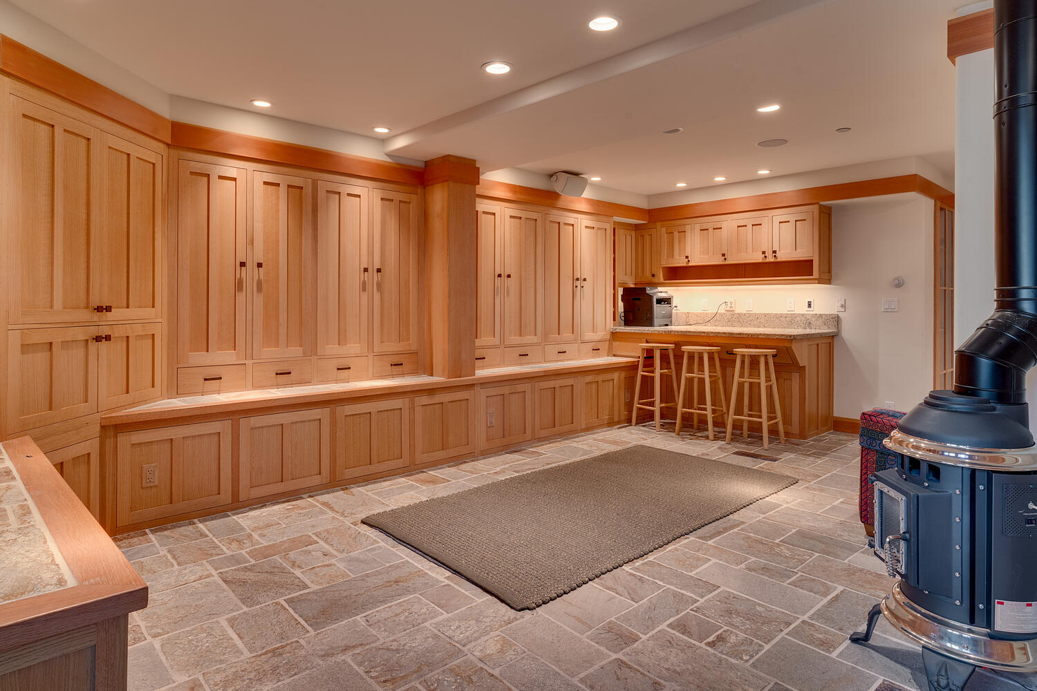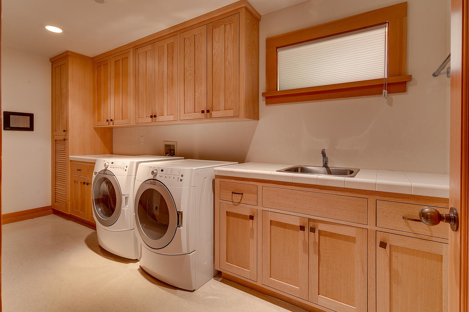 The garage includes built-in storage cabinets, a workstation with sink, and a wall of organizers, baskets and hooks, for all your Tahoe toys. An additional outdoor closet can house all your supplies. Storage at this home is truly unparalleled.