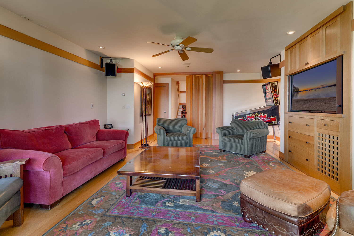 Custom-designed to entertain, sophisticated details allow you to host with ease. A caterer's kitchen includes a second Sub-Zero refrigerator & freezer, an industrial dishwasher, a microwave and plenty of storage. A hidden wine cellar is ideal for tastings. A rooftop deck with hot tub provides a glorious setting to soak in lake views. The concert grand piano will regale your guests in a room with perfect acoustics, with or without a pianist. Or, enjoy the Sonos surround sound throughout the home. Let the children escape to the rec room or the den with accordion doors for kid games and fun. Gather for sunsets from the west-facing balconies.