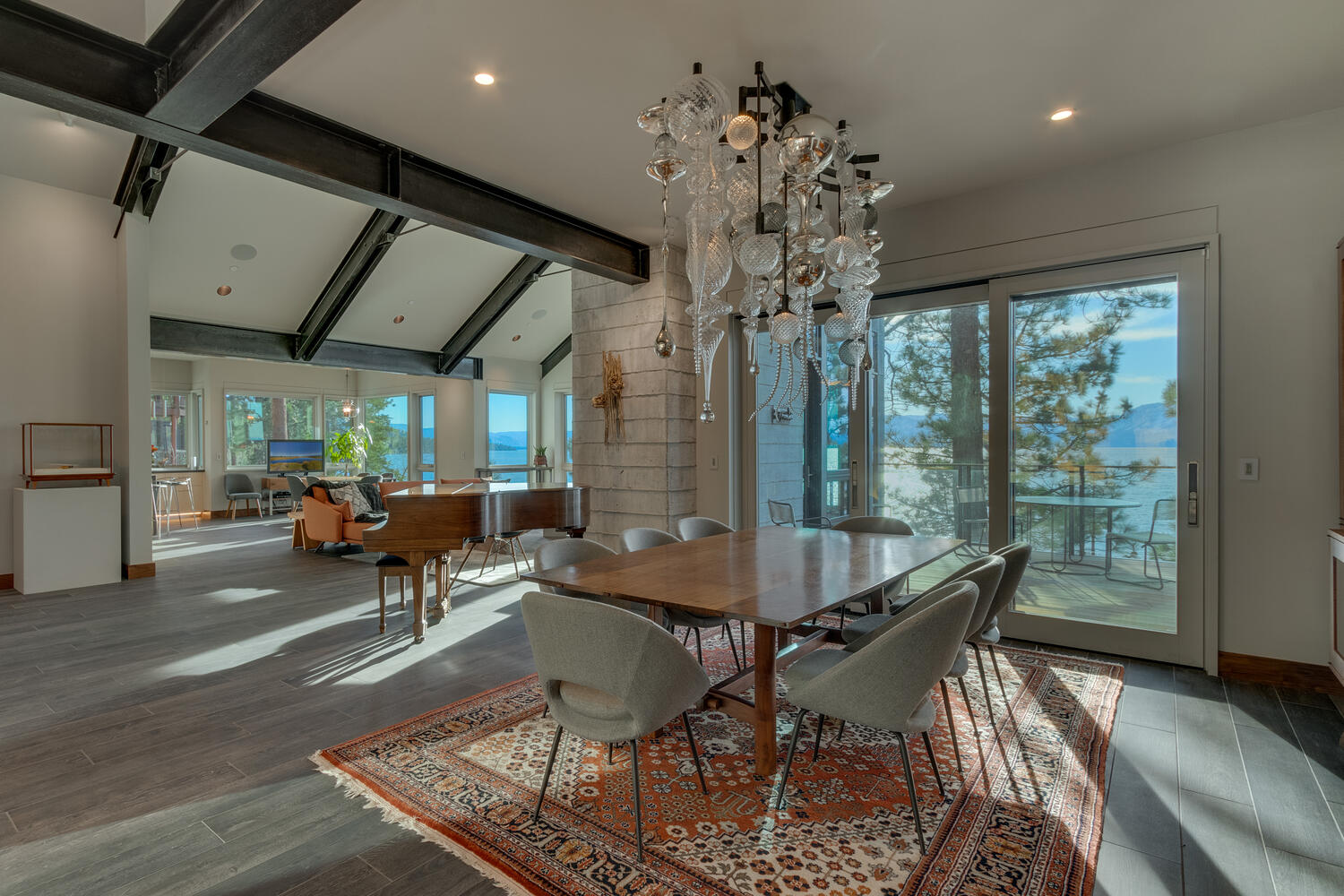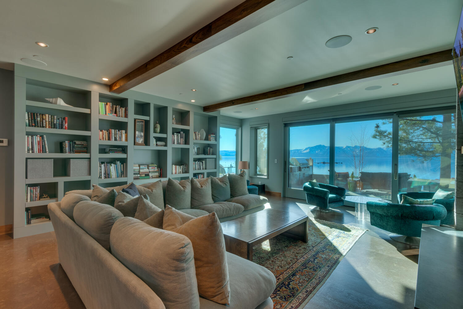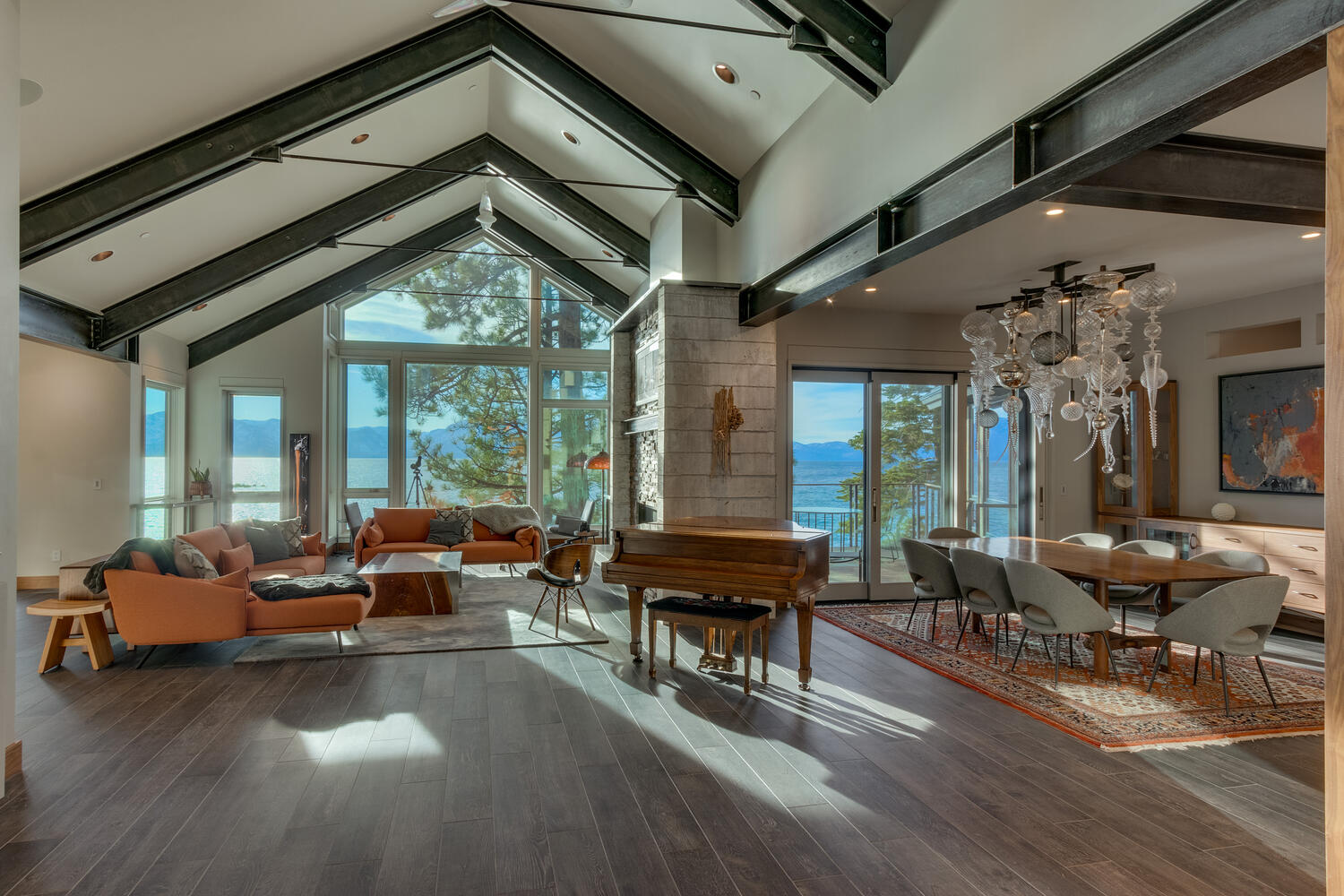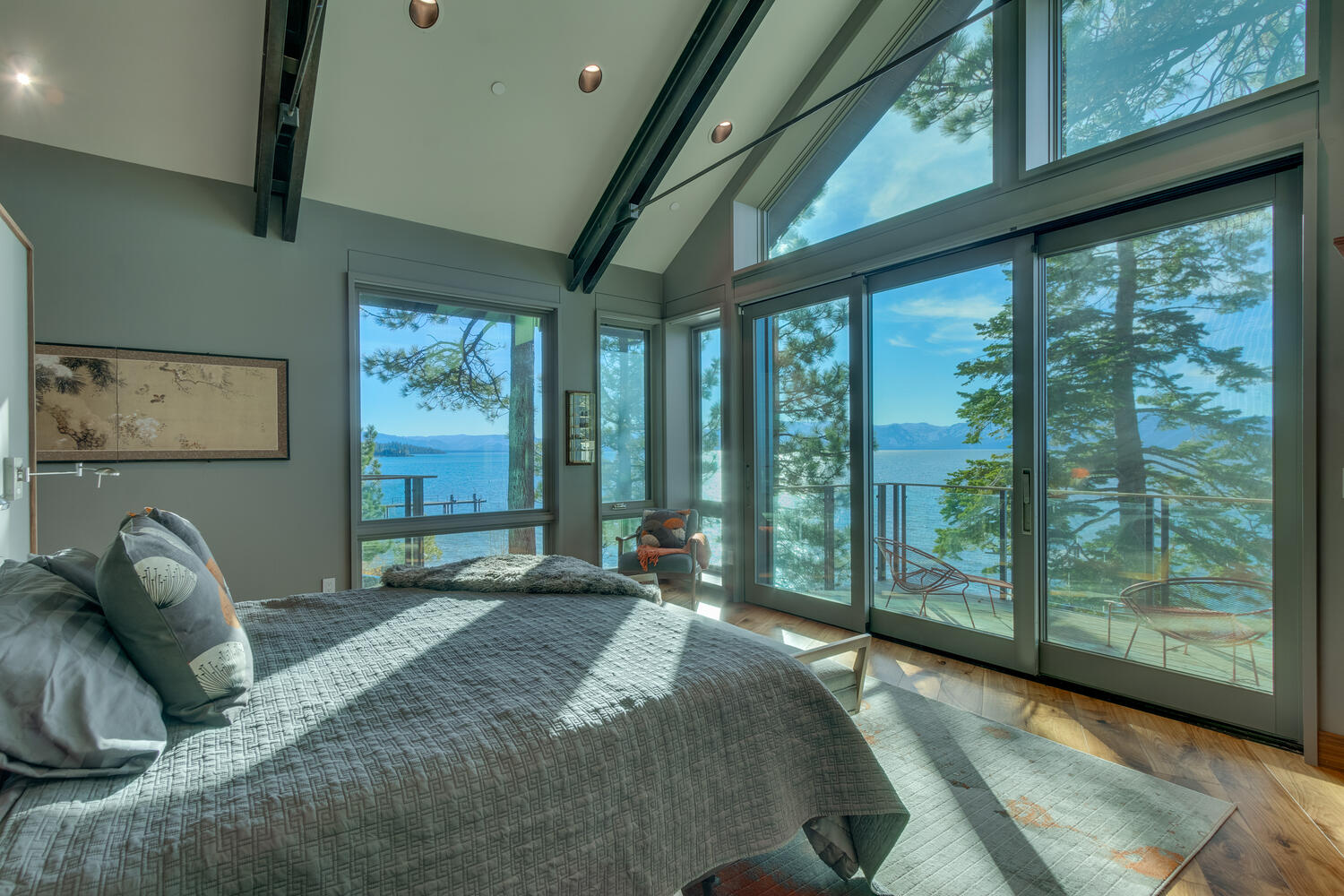 Welcome to paradise. This East Shore two-acre lakefront compound includes everything you could dream of, offering you a personal oasis for family and friends. With a main house, a guest house and an additional building with RV/Boat parking (think: artist studio, office, guest space, or whatever your needs may be), there is plenty of room for everyone to enjoy this sanctuary on the shores of Lake Tahoe. Pass through the gated entrance and feel your worries slip away as you head down the paver driveway and approach this unbelievably stunning, mountain modern, custom-crafted home. Floor-to-ceiling windows showcasing panoramic lake views are complemented by the chic design and open floor plan, offering a bright, warm and inviting space.