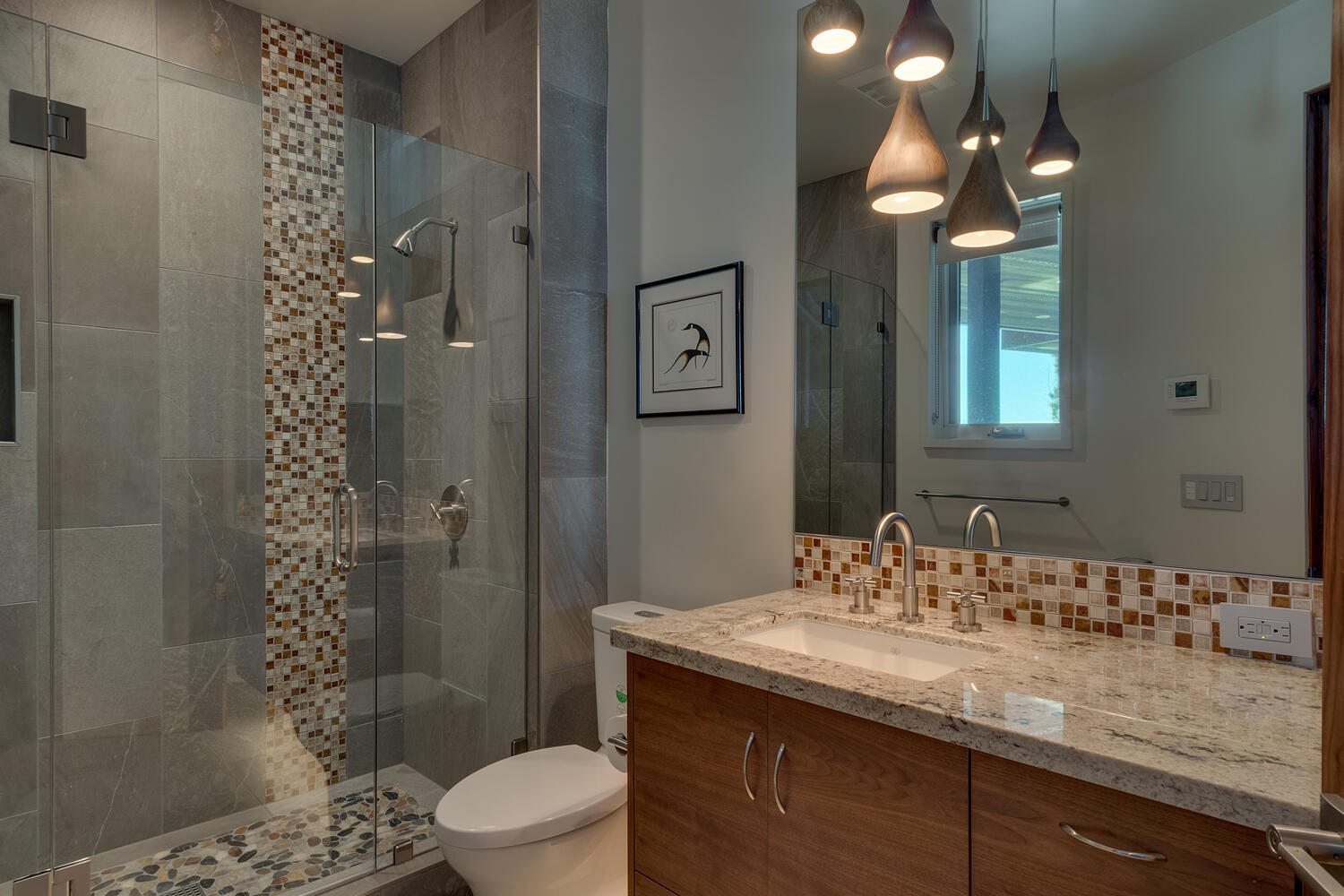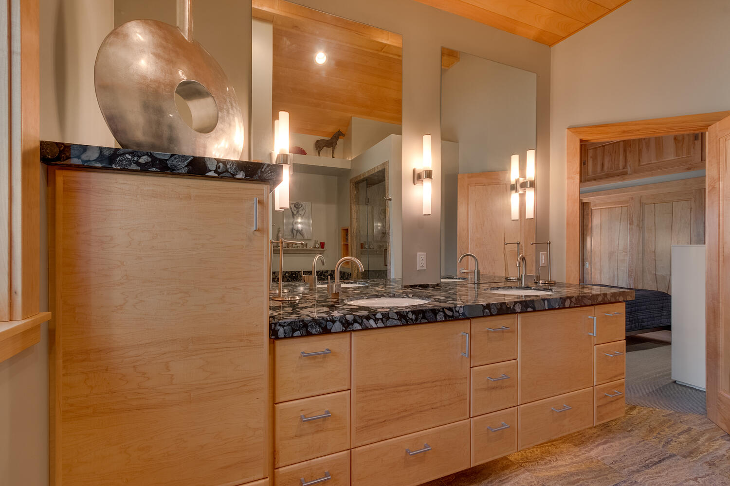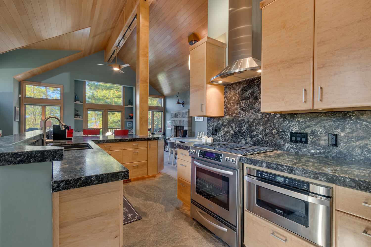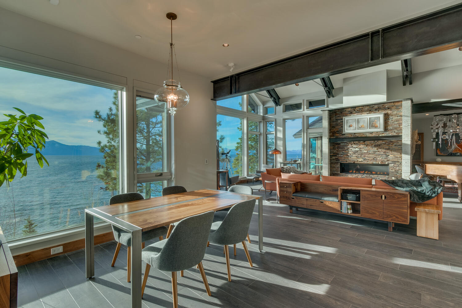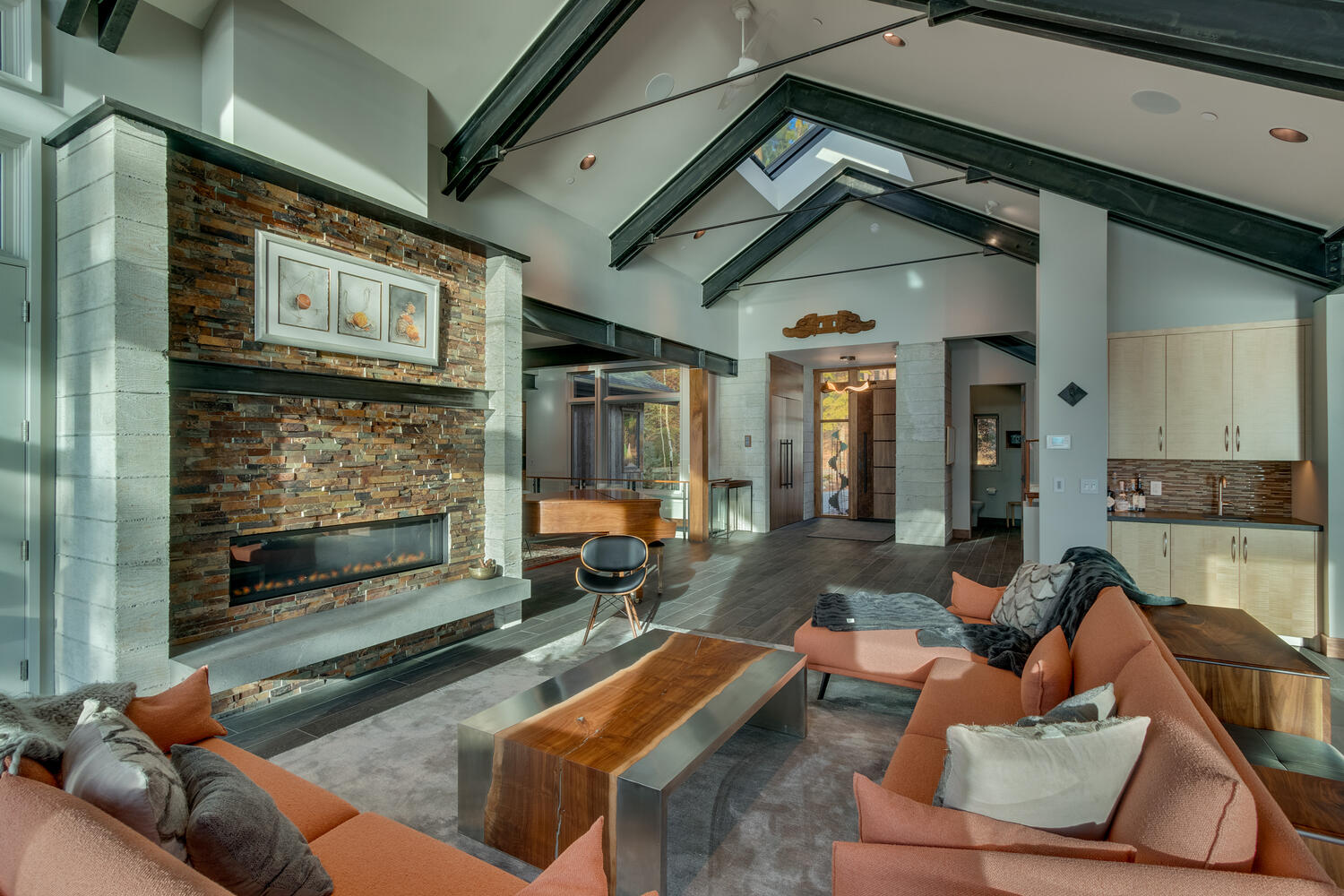 Meticulously designed by a New York artist and experienced builder, no detail has been overlooked. Sycamore and walnut woods combine with steel beams, concrete accents and intricate mosaic tile work. The result is a contemporary home, both vibrant and calming, that welcomes you to relax and unwind to Tahoe time.