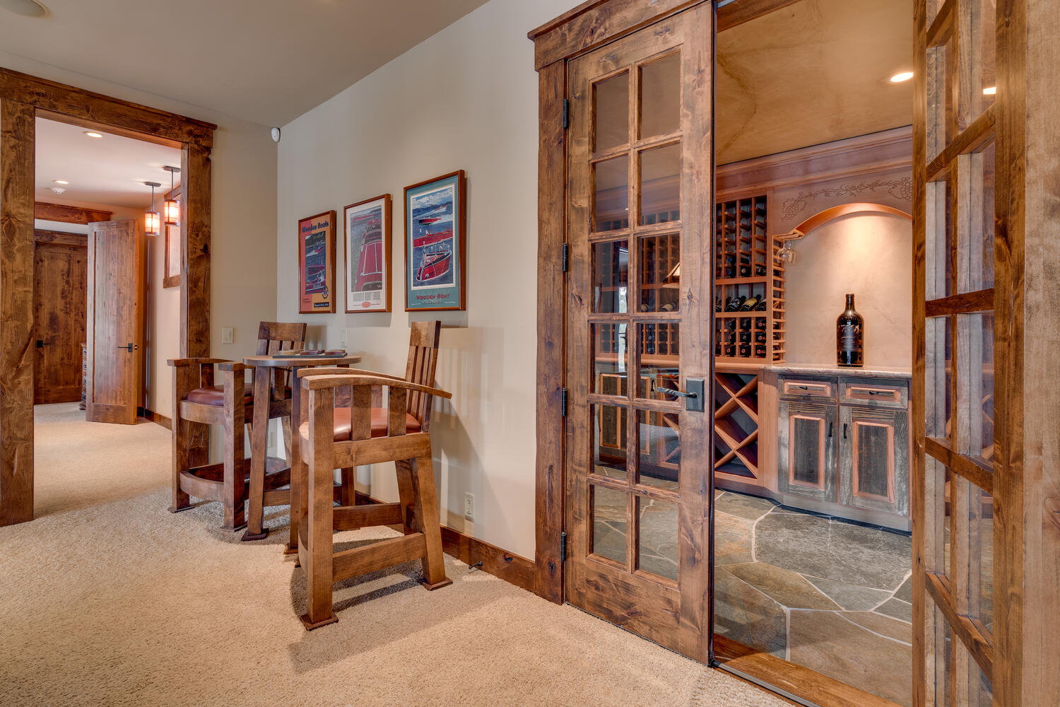 The home's architecture is a celebration of meticulous craftsmanship. Exquisite stonework, commanding beams, elegant slate accents, and intricate steel details converge to create an ambiance that is both majestic and inviting, reminiscent of a distinguished lodge. Spanning an impressive 4,140 square feet, the layout is thoughtfully designed to encompass four ensuite bedrooms, plus a kids' bunk room, ensuring privacy and comfort for all.