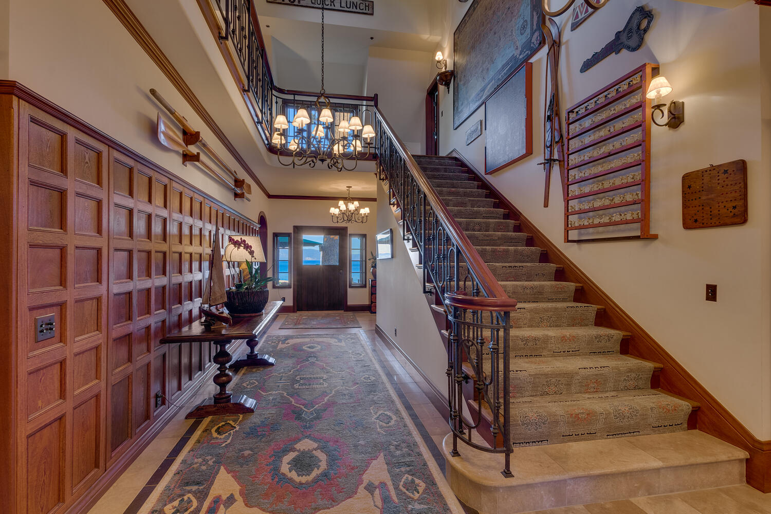 Pass through the courtyard, over the hand-hewn insulated stones, to reach the front door of the 7 bedroom & 7.5 bath main house and immediately, you are struck by both grace and grandeur. Inspired by the famed Pope Estate, this home was designed both inside and out as a tribute to Lake Tahoe's past, recognizing the west shore's magnificent homesteads of yesteryear. Custom finishes and fine materials hand-selected by famed L.A. designer Gary Gibson Interior Design impeccably showcase both elegance and history. From Mahogany walls to remarkable relics, the details evoke dignity and sophistication, while geniously maintaining a comfortable space, meant to be enjoyed by all.