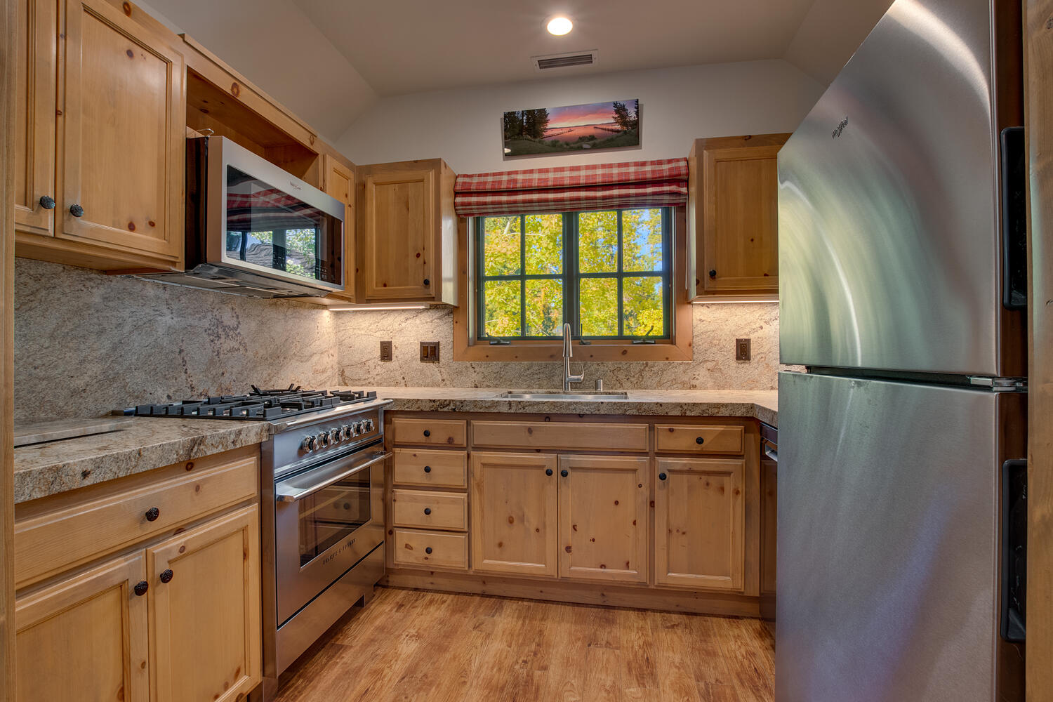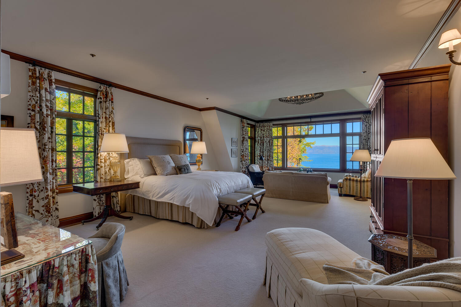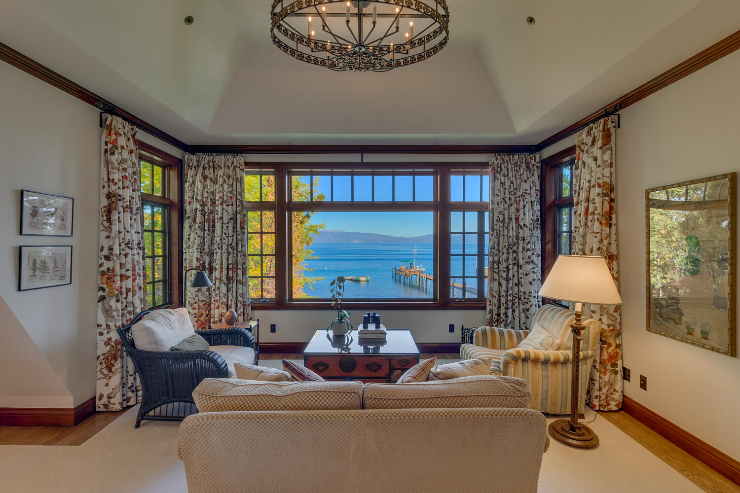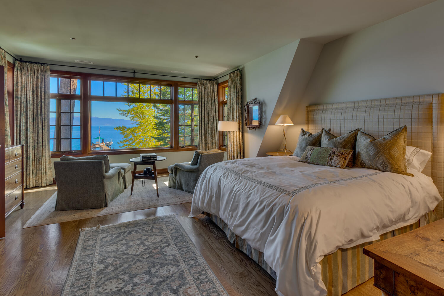 Genuinely designed to entertain, there is ample space to ensure everyone is welcome to unite at the lake. A guest apartment within the main house, at the west wing, includes a kitchen, offering a separate retreat. An additional 2 bedroom & 1.5 bath guest house is a tribute to Tahoe cabins. Guests can retreat to privacy and gather around the riverstone fireplace for quiet time as night falls.