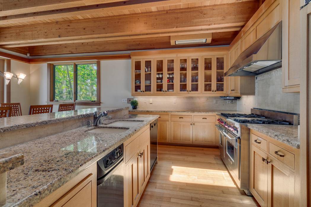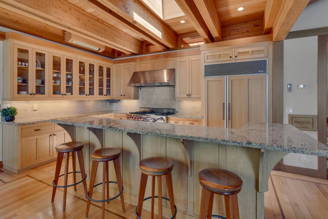 When you aren't enjoying immediate lake access and the community amenities or hosting your guests, you will appreciate the peace you will find in this comfortable setting. Floor-to-ceiling windows showcase views of Lake Tahoe. Intricate beam work, handmade ironworks, stained glass windows, stairs with custom-fit carpet, Douglas fir hardwood floors with custom trim and custom cabinetry throughout highlight the elaborate detail and care with which this home was built.