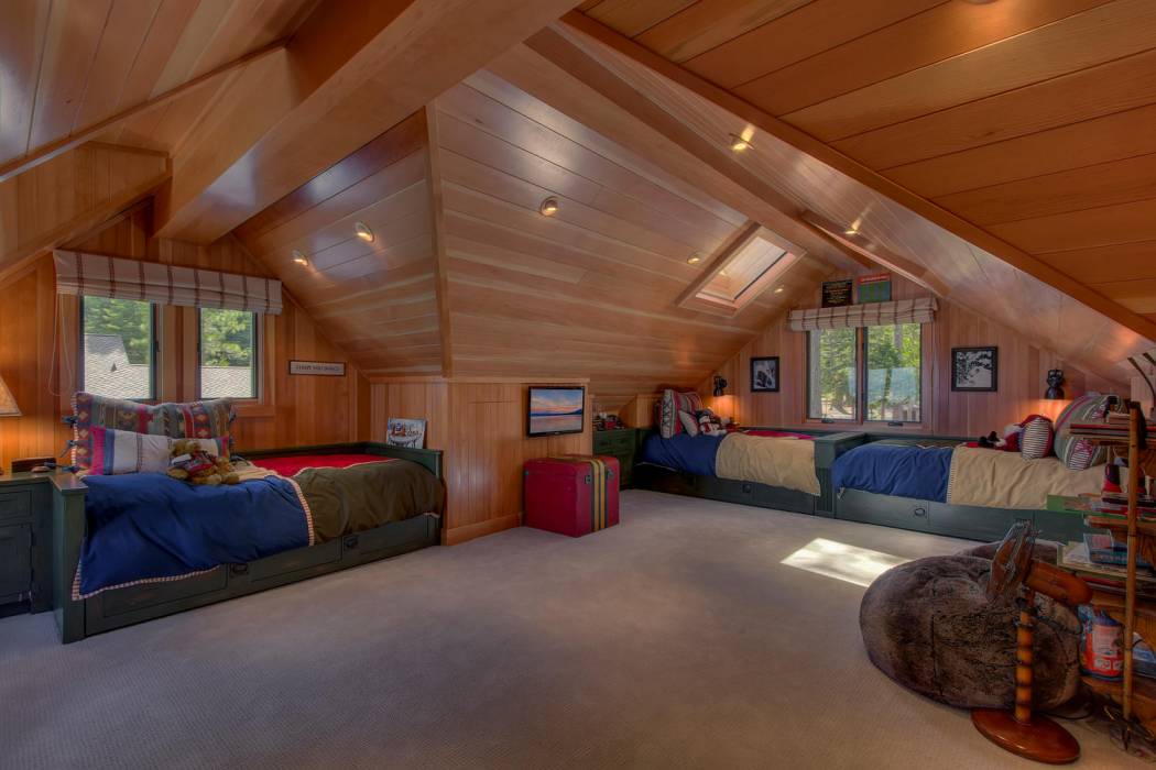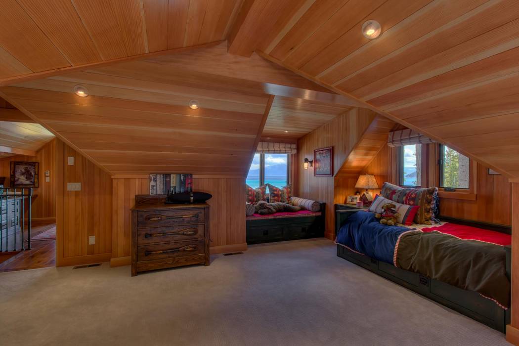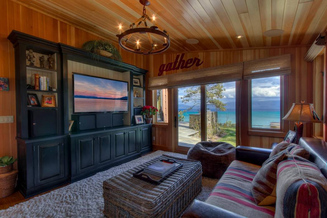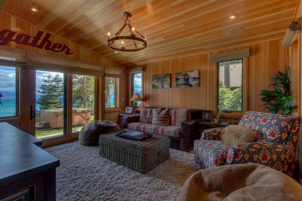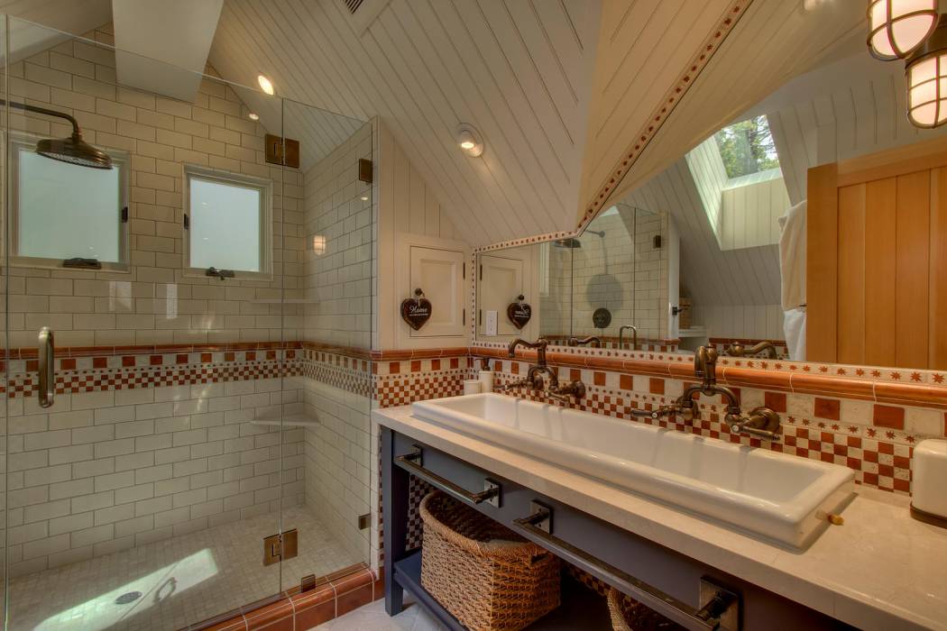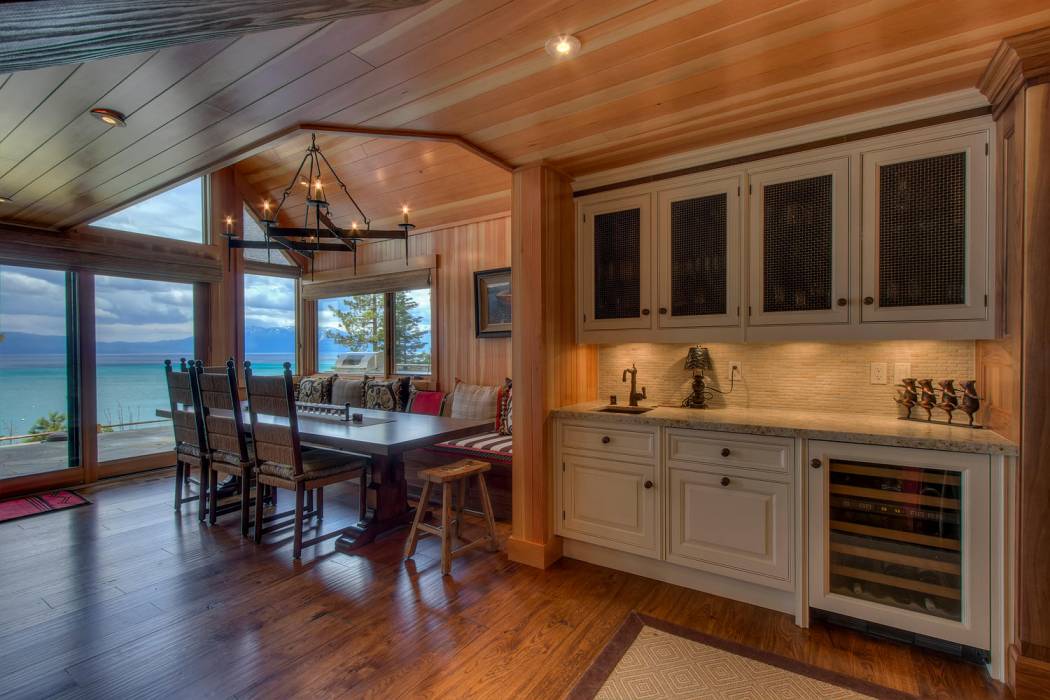 The majestic waters of Lake Tahoe can be seen from nearly every room in the house. Glass doors open up the dining area to bring the outdoors in. Custom finishings abound with elegant woodwork, unique hardware, custom cabinetry by award-winning Christopher Peacock, intricate tile work, and stunning countertops throughout the home. The gourmet kitchen boasts top-of-the line appliances including a wine fridge and bonus Sub-Zero drawers, a porcelain farm sink, and abundant pantry space.
