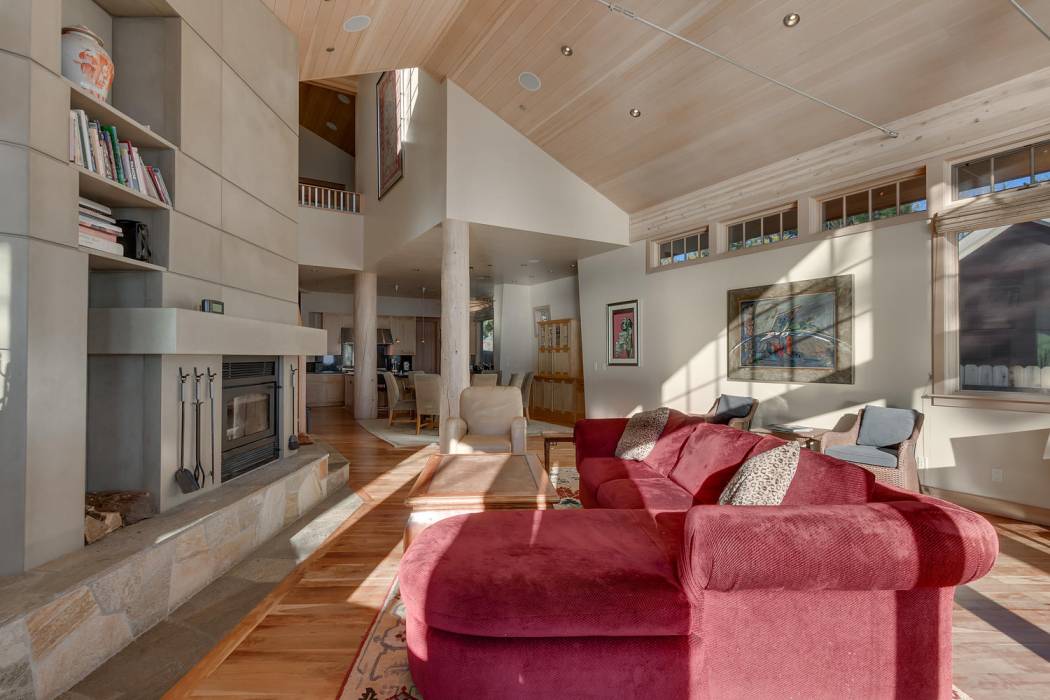 Built by renowned John Brink Construction, elegant and modern touches abound. Cherry hardwood floors include radiant heating. Floor-to-ceiling windows offer panoramic lake views and allow for abundant sunlight. In the winter, level access to this home is even easier with a snowmelt system in the driveway that also runs on the decks. A concrete fireplace, wood beams, angled walls and fine finishes showcase the thoughtful design throughout the home.